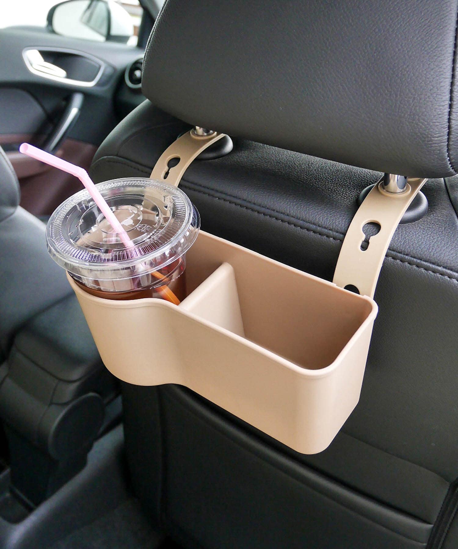 後部座席につけれるフォルダー。ドアの横にドリンクフォルダやちょっとした小物入れはあるけど、ヘッドレスト部分に取り付けられるから、子供達を後ろに乗せた時の飲み物とかも使いやすそうだと思い、購入してみました。