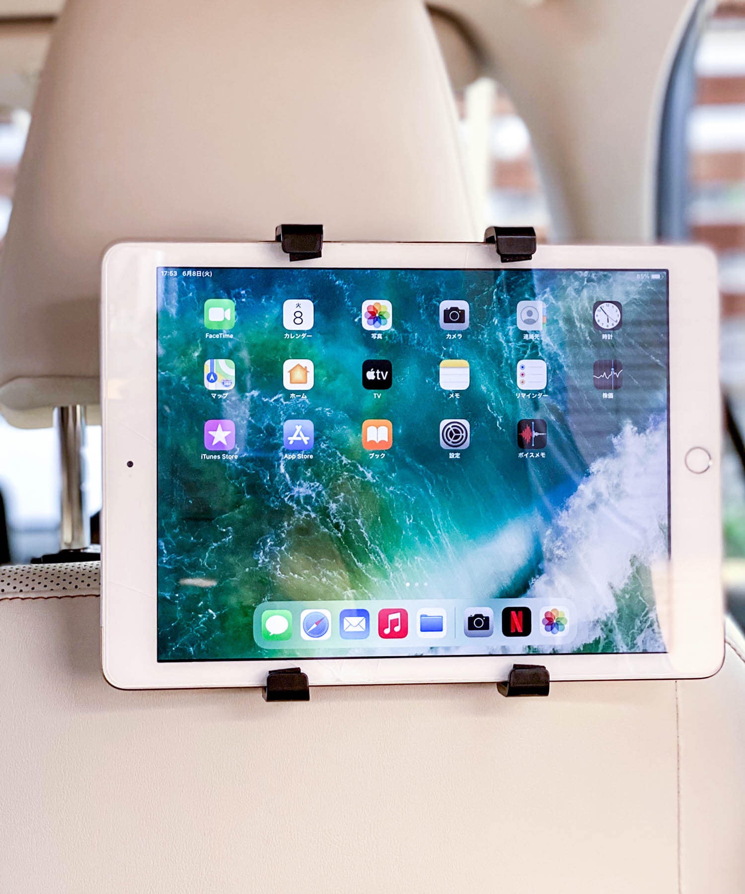 まだ使ってませんが、iPadに、Amazon primeビデオからダウンロードして、待ち時間が長い時に後部座席から観れたら良いなと思い、こちらも購入。こちらもまだ近所、子供送迎や買い物程度の利用なので使ってませんが、使うの楽しみです。