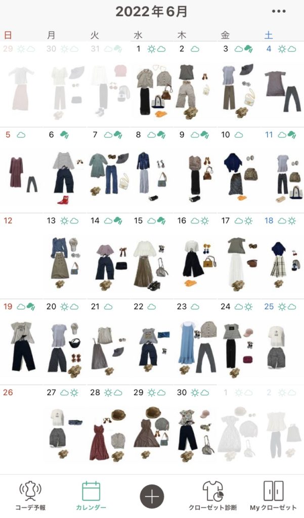- カレンダーに登録しておけるから、満遍なく服を活用できる