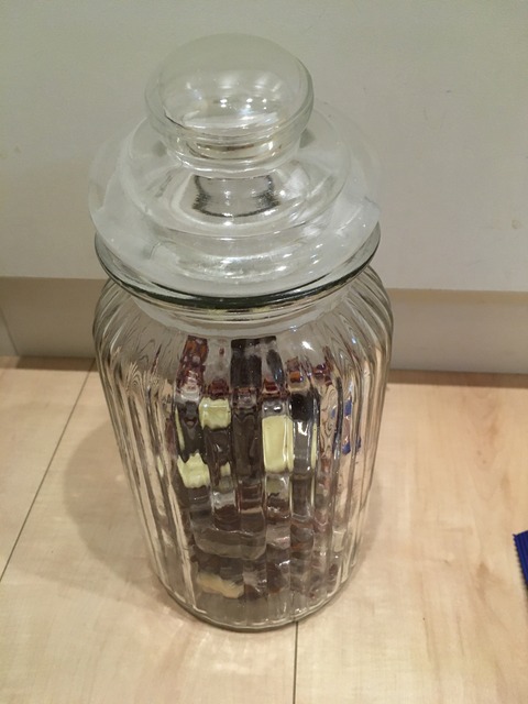 チョコレートをすぐ食べれるように瓶に入れ、常に残量チェック
