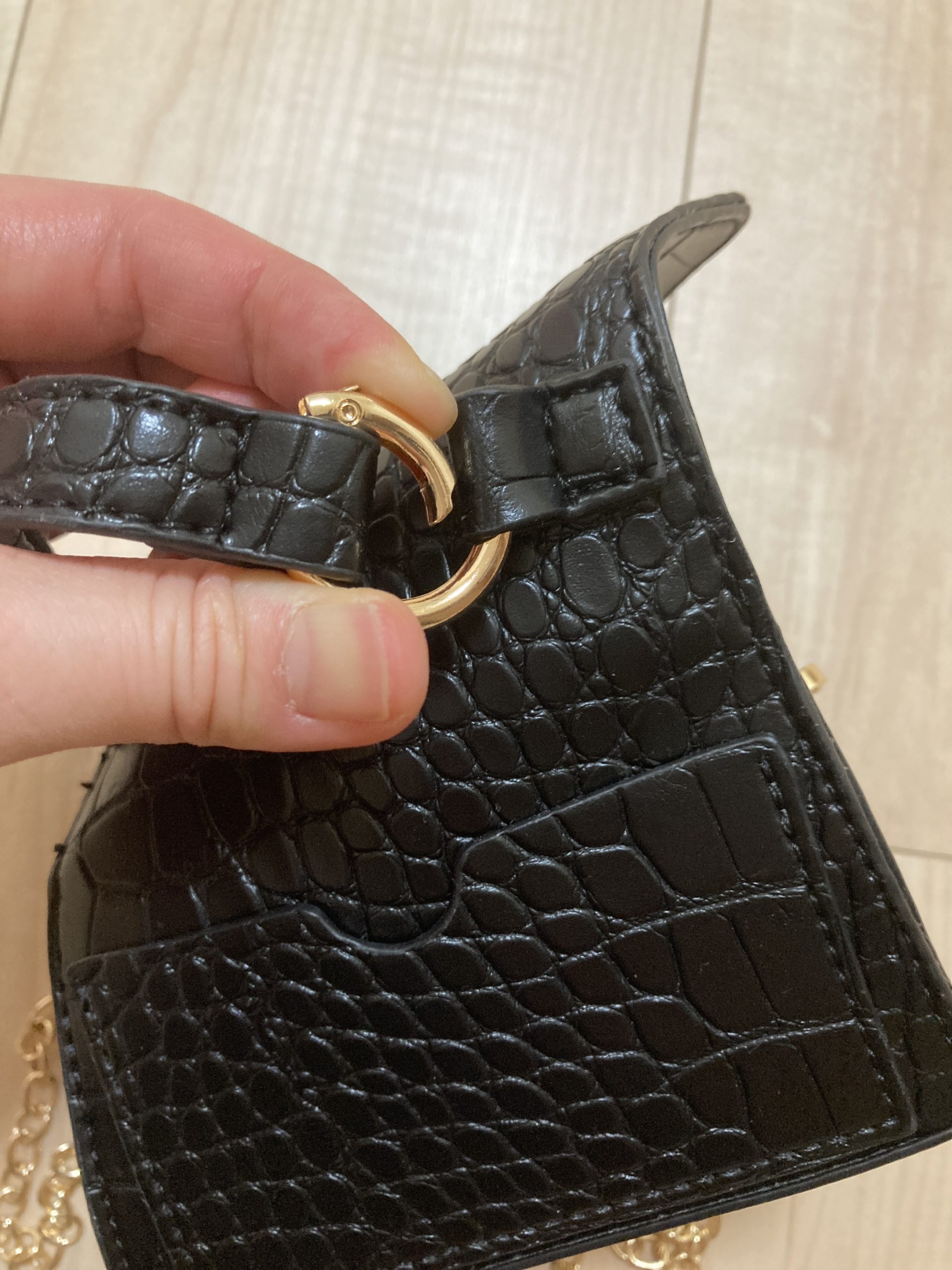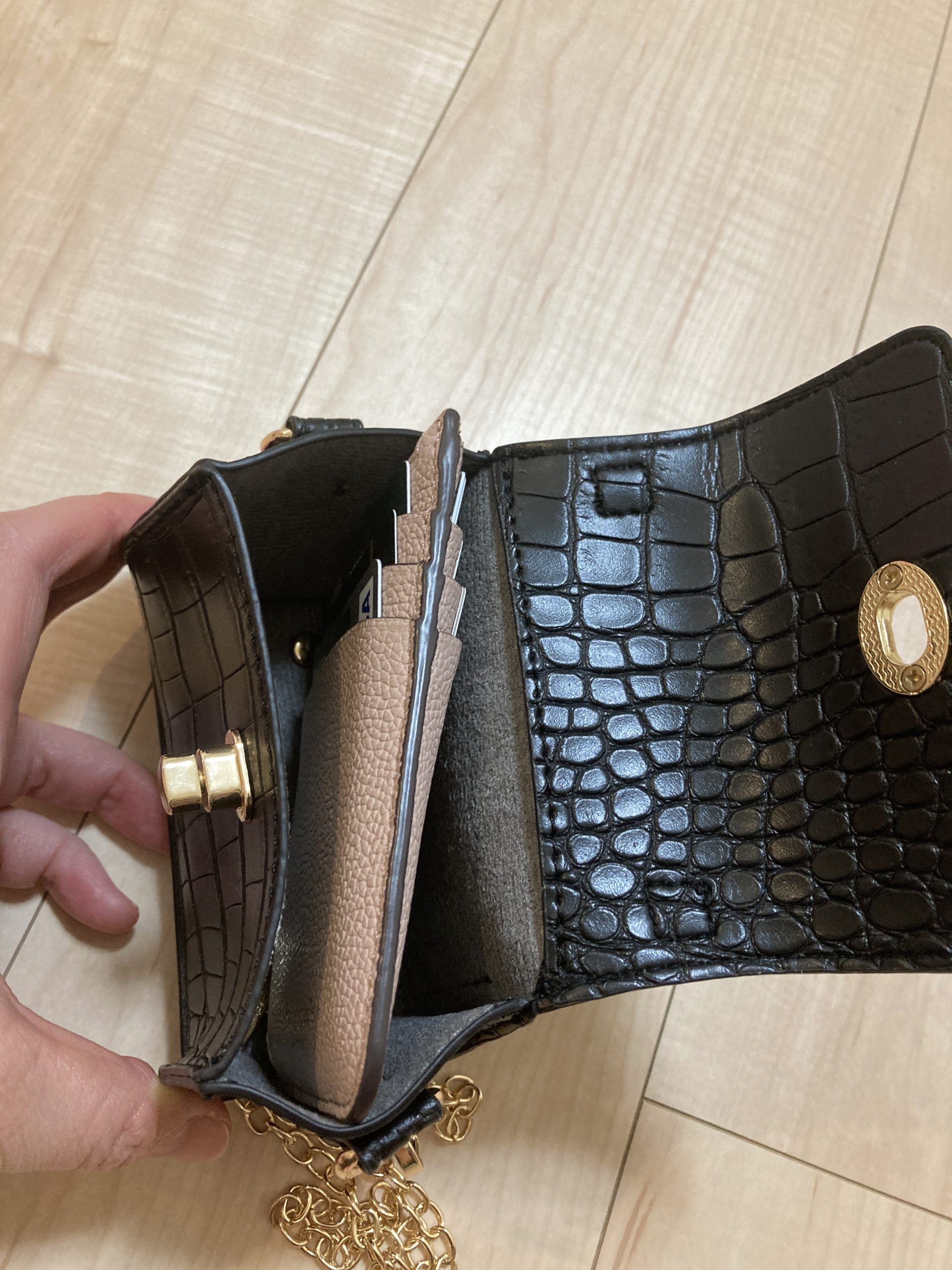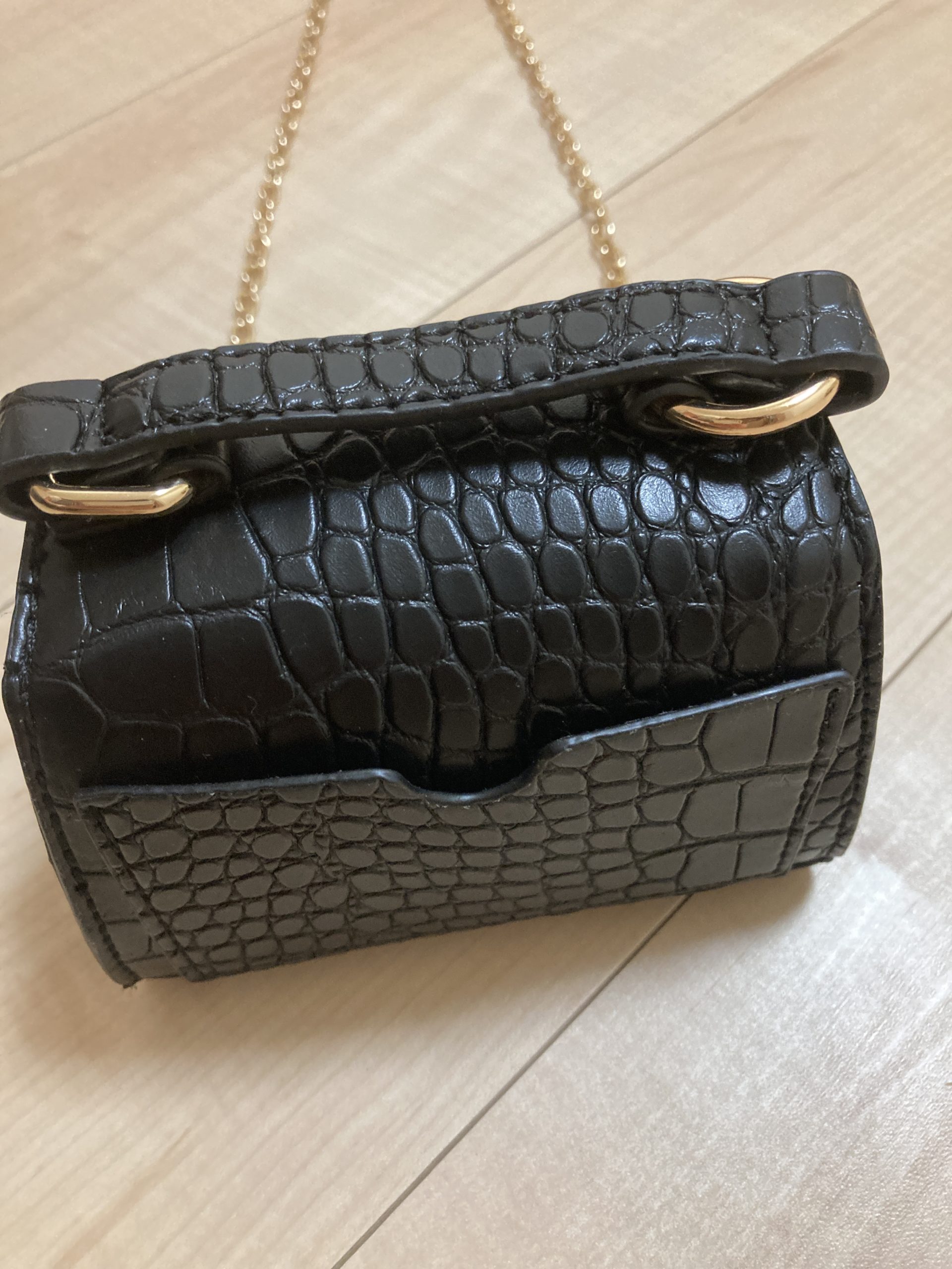 ミニミニで可愛いマイクロミニバック。チェーン付きでショルダーとしても使える。後ろにはカードを収納出来るケース付きで便利です。
