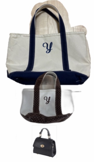 上から、大きめのトート、お弁当袋位のミニサイズトート、マイクロミニバックの大きさ