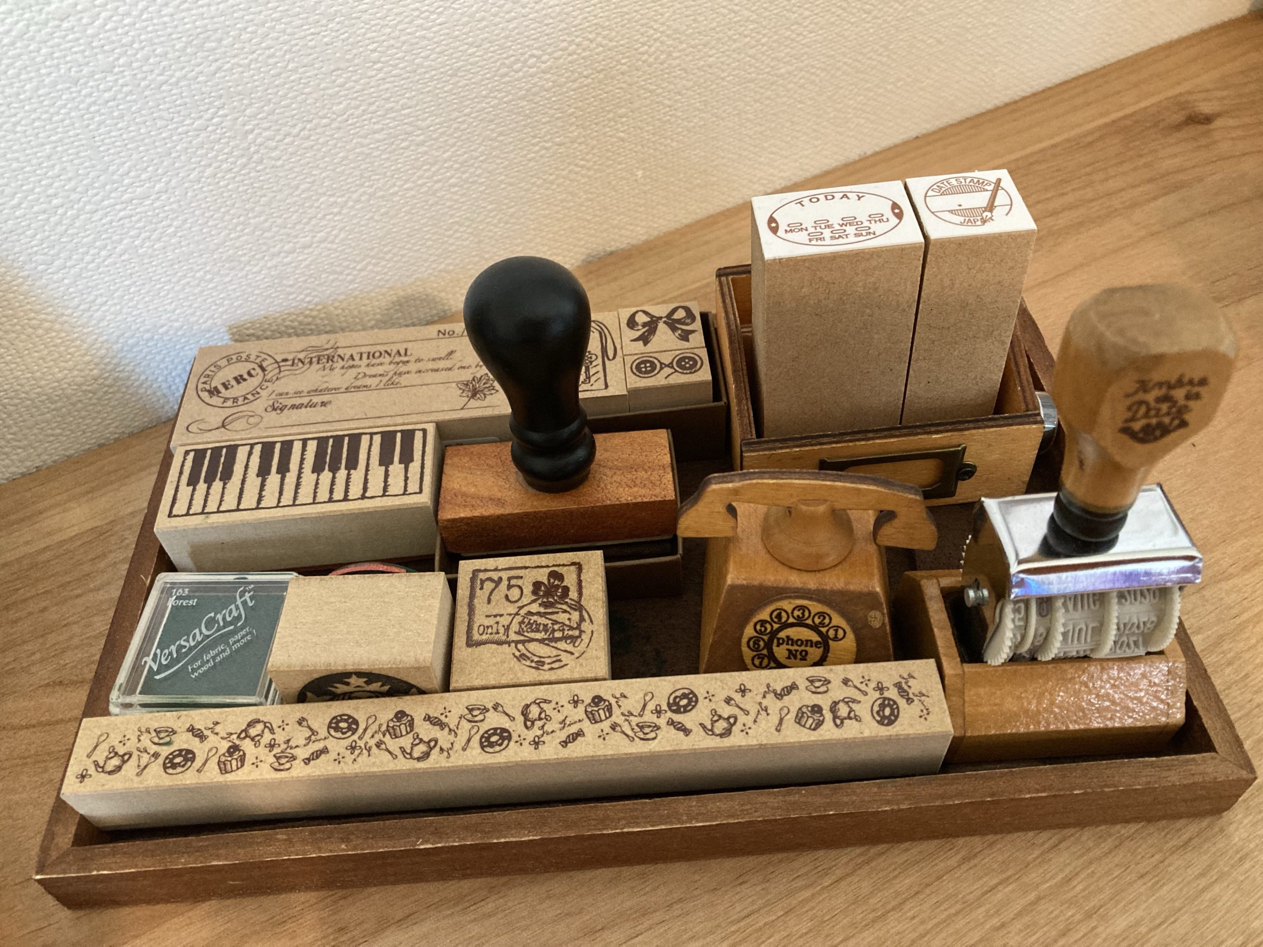 活躍するのは日付スタンプ、いくつか種類持っていて、気分によって変えたりして楽しんでいます。
