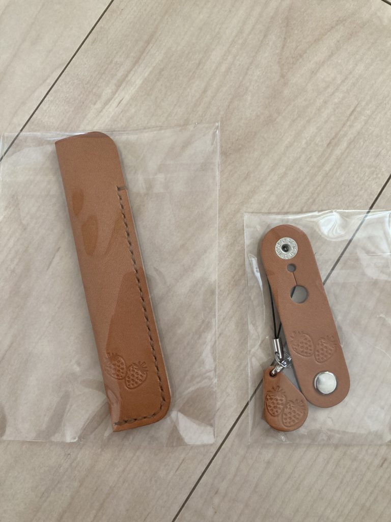 ハンドメイドのヌメ革のペンケースとコードクリップなど
